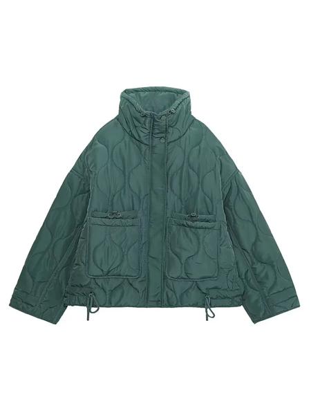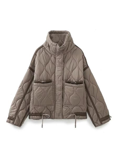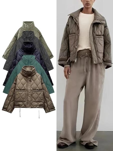 TRAFの女性の新しいファッション暖かい綿のジャケット秋と冬の立ち襟長袖フロントジップボタン付きヴィンテージジャケット