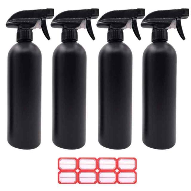 スプレーボトル アルコール HDPE【新型コロナウイルス対策】500ml 4個セット 除菌 消毒 黒 遮光 小分けボトル 液体詰替用ボトル アトマイザー