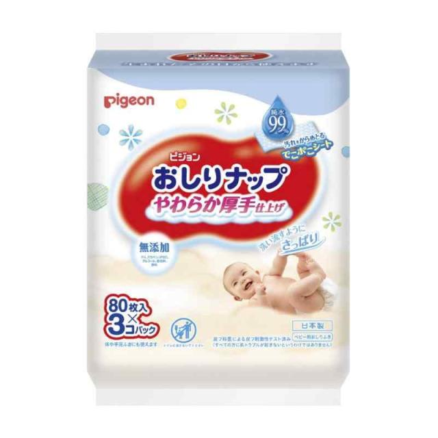 【おしりふき 詰替用】ピジョン Pigeon おしりナップ やわらか厚手仕上げ 純水99% 80枚×3個パック