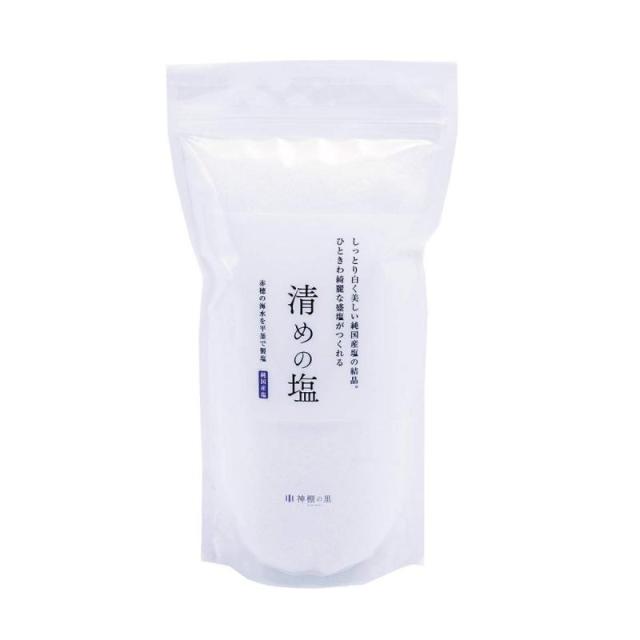 この「清めの塩」はミネラル豊富な海水から作り出されているため塩の粒子が粗く少し水分を含んだフレーク状となっているため器にいれるだけで円錐の盛り塩ができます。