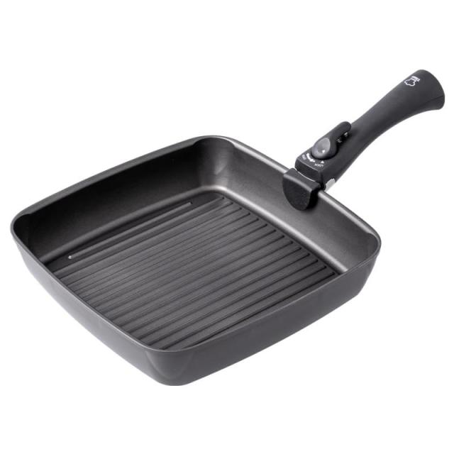 アイメディア(Aimedia) 魚焼きパン グリルパン フライパンセット 2点 (スクエアパン/専用脱着ハンドル) スクエアパン 26cm角 脱着ハンドル付 取っ手セット チタンシェフ ワイドサイズ IH対応 ガス火対応 オーブン対応 食洗機対応 着脱式取
