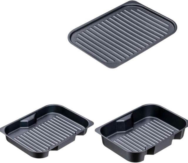 イシガキ グリルパン ブラック 約幅18×奥行24.5 グリル名人 深型 浅型プレート 波型プレート セット レシピ付き オーブントースター 魚焼きグリル 食洗器 対応可能 4209