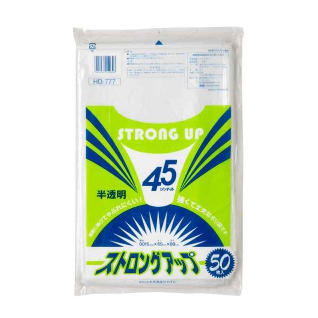 ケミカルジャパン ごみ袋 ポリ袋 半透明 横65cm 縦80cm 厚み0.015mm 45L 50枚 ストロングアップ 枚数増 ゴミ袋 HD-777