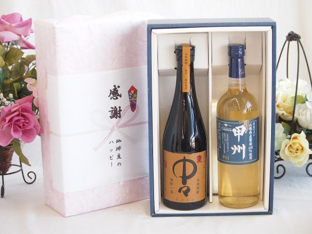 感謝の贈り物ボックス プレミアムな麦焼酎中々と国産ワインセット(山梨県産葡萄100%使用 甲州 辛口白ワイン 辛口(山梨県)720ml黒木本店 麦焼酎 中々720ml
