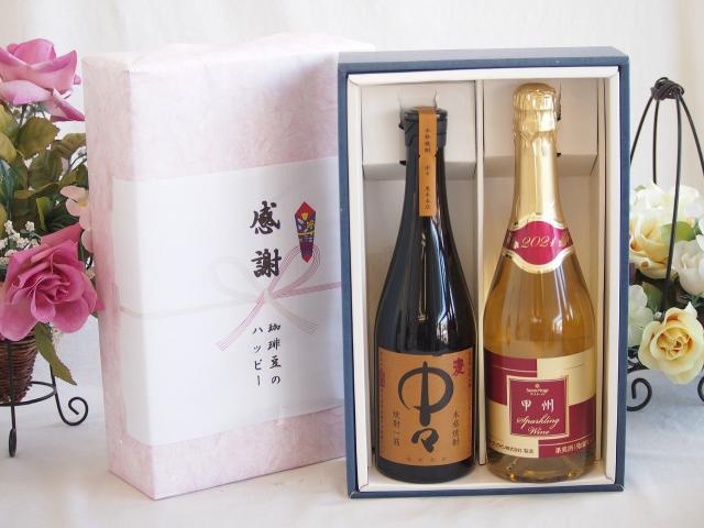 感謝の贈り物ボックス プレミアムな麦焼酎中々と国産ワインセット(甲州スパークリング 白ワインやや辛口(山梨県)720ml黒木本店 麦焼酎 中々720ml