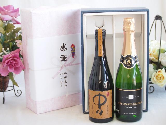 感謝の贈り物ボックス プレミアムな麦焼酎中々と国産ワインセット(塩尻ナイアガラスパークリング白ワインやや甘口(長野県)720ml黒木本店 麦焼酎 中々720ml