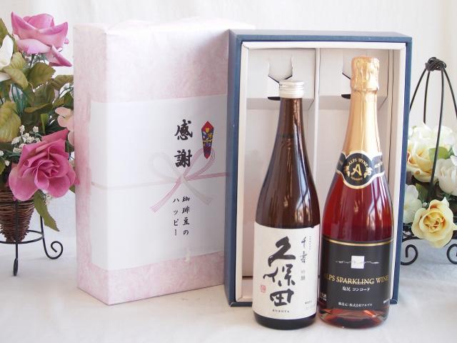 感謝の贈り物ボックス 久保田千寿と国産ワインセット(塩尻コンコードスパークリングロゼワインやや甘口(長野県)720ml日本酒千寿(新潟県)720ml