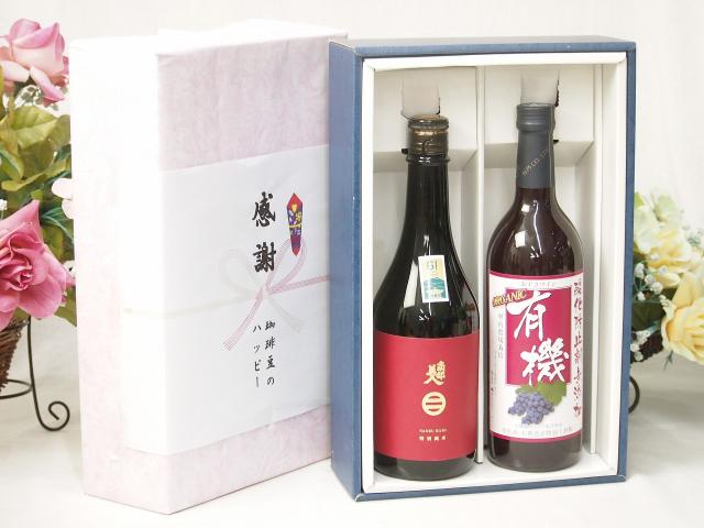 感謝の贈り物ボックス 清涼感ある南部美人と国産ワインセット(酸化防止剤無添加 有機あずさ赤ワイン 中口(長野県)720ml日本酒南部美人特別純米 (岩手県)720ml
