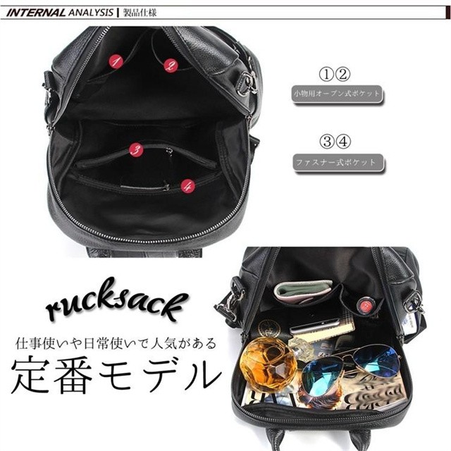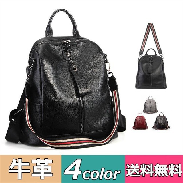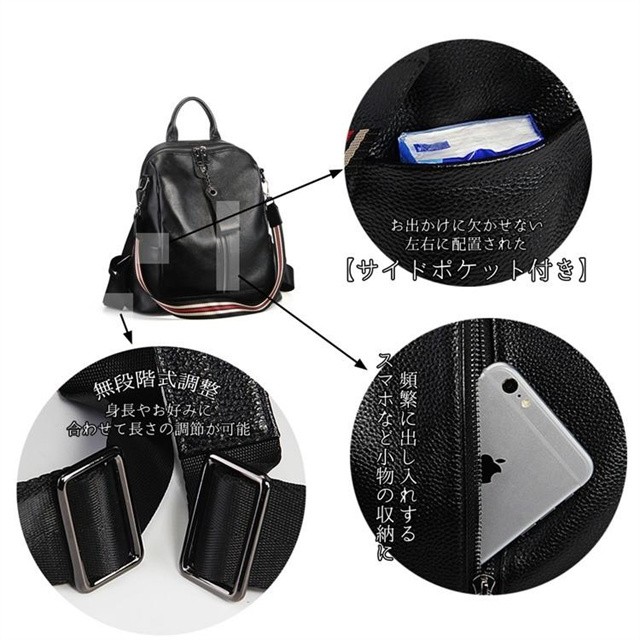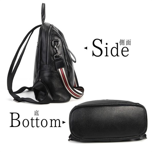 【ポイント5倍!】リュックサック レディース 2way 革 黒 無地 リュック 本牛革 本革 牛革 レザー 肩掛け トート 外 サイド ポケット付き 軽い 通勤 通学 a4 背面ファスナー
