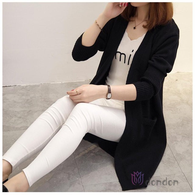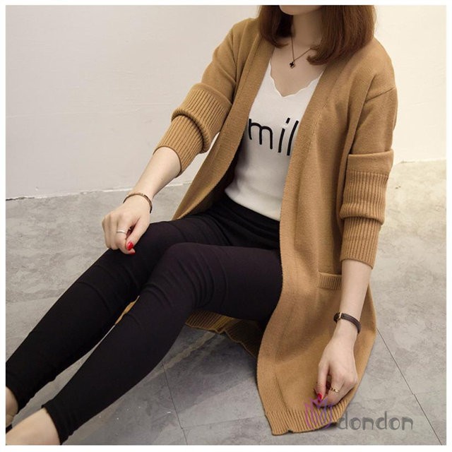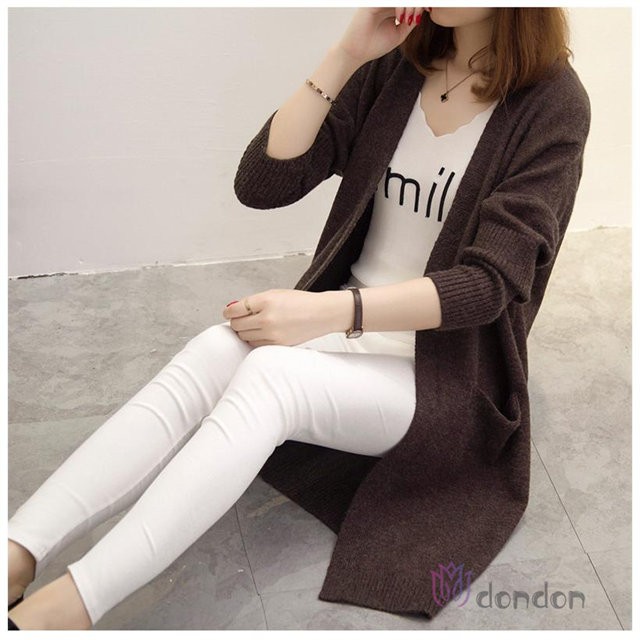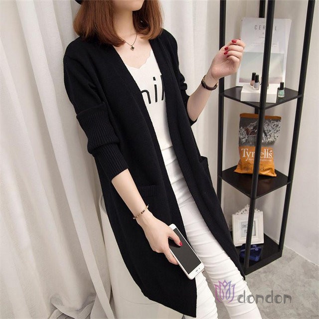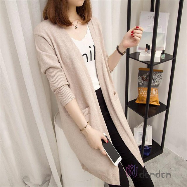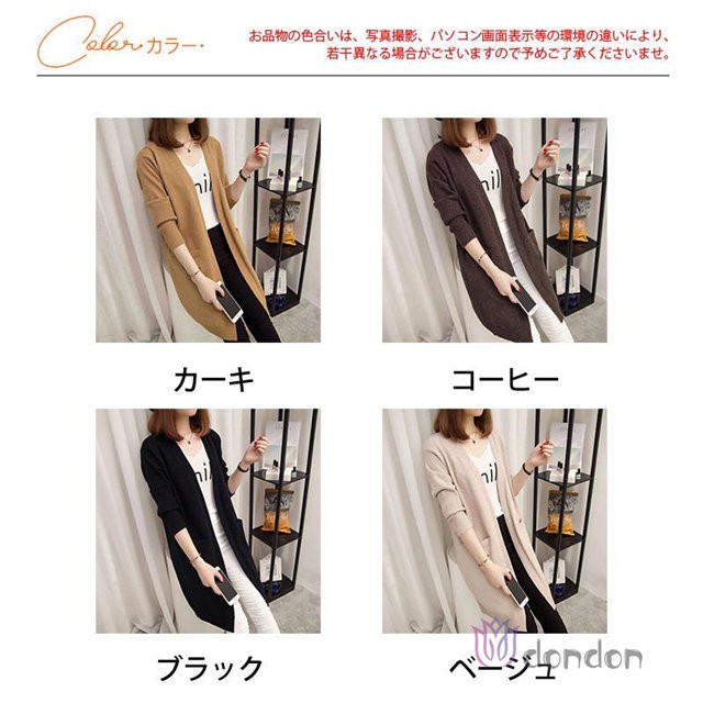【ポイント5倍!】ニットカーディガン レディース リブ袖 ロング丈 アウター コート ニット 羽織り ライトアウター シンプル カジュアル 体型カバー 通勤