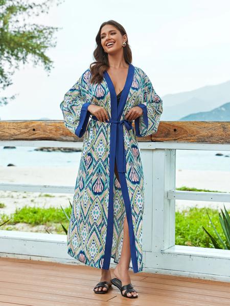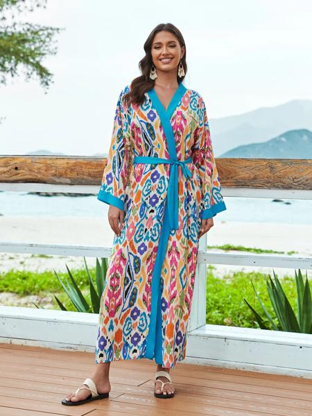 女性用ビーチチュニック,長袖,ビーチウェア,カフタン,夏,2023コレクション