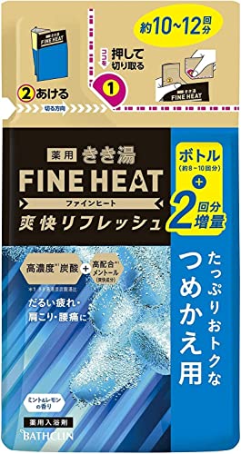 医薬部外品きき湯 炭酸入浴剤 ファインヒート 爽快リフレッシュ つめかえ用 ミントレモンの香りの炭酸入浴剤 アクア(透明タイプ) のお湯の色の炭酸入浴剤 500グラム (x 1) ミント&ライムの香りの炭酸入浴剤 アクア(透明タイプ)のお湯の色の炭酸入浴剤