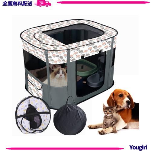 ◆商品名:折りたたみ ペットサークル 軽量 持ち運 折畳み ペット サークル 屋根付き【収納バッグ付き】(70x55x45cm, Gray)