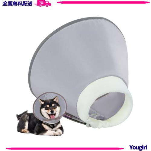 IECOii エリザベスカラー 犬 猫 防水タイプ 調整可能 軽量 引っ掻き防止 傷舐め防止 皮膚病 傷口保護 去勢手術 避妊 小型犬 グレー M