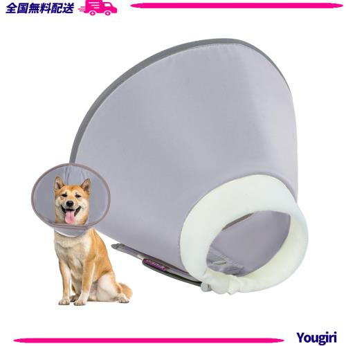 IECOii エリザベスカラー 犬 猫 防水タイプ 調整可能 軽量 引っ掻き防止 傷舐め防止 皮膚病 傷口保護 去勢手術 避妊 中型犬 グレー L