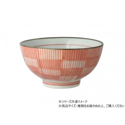 刷毛格子 飯碗 (中) 赤 704715 |b03