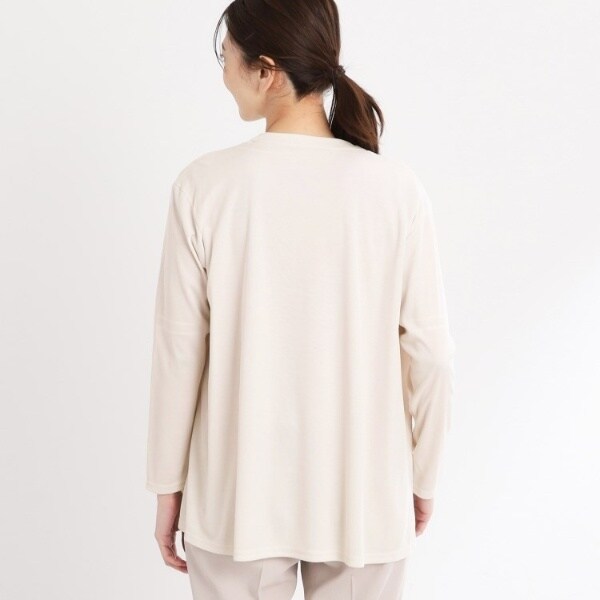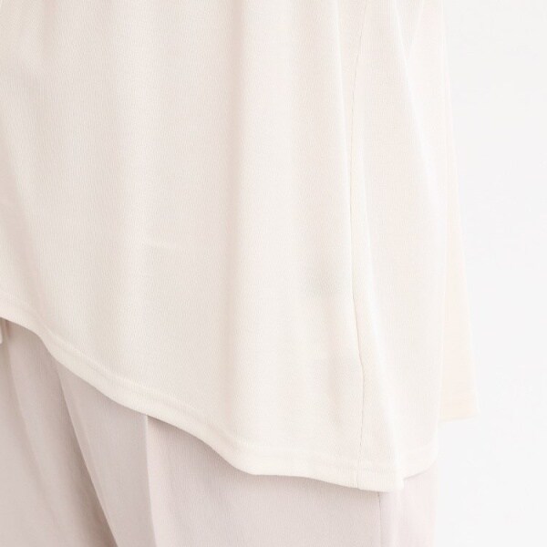 前丈を短めにし、スカートにもパンツにも合わせていただけるように後ろ丈は長めに、前後差のある丈バランスで仕上げました。