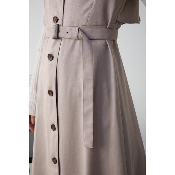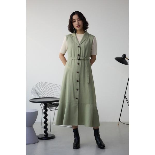 ■オープンカラージレワンピース■ポイント1枚でワンピースとしてはもちろんですが、前を開けてジレとしても着用出来ます。ツイード素材とリネンライク素材の2素材で展開。春□秋まで着用できるアイテムとなっています。■ディティールシンプルながら裾のフレア切り替えデザインと、共布ベルト付きでウエストマークができ、品良くスタイリングに馴染んでくれます。■スタイリングワンピースとして、ジレとして着回しスタイルを楽しめます。パンツと合わせるスタイリングもおすすめです■生地柄は異なる太さの糸を組み合わせた表面感のあるツイード素材を使用。無地は強撚のポリエステル素材を使用。透け感:なし裏 地:なし伸縮性:なし光沢感:なし※L/KHAはEC限定カラーです。[注意事項]※画像の商品はサンプルです。実際の商品と仕様、加工が若干異なる場合があります。※画像の商品は光の照射や角度、お使いのモニター環境により、実物と色味が異なる場合がございます。※着用、お取り扱いの際は、アテンションタグをご確認ください。