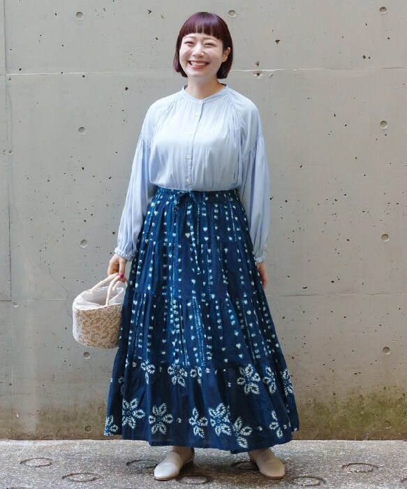 『コットンキャンブリック』という軽い生地ならではのボリューム感で歩くたびに広がるシルエットが美しい一枚です。