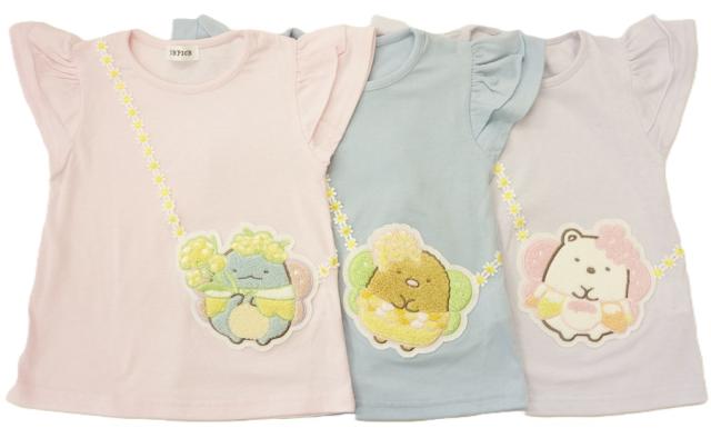 【メール便利用!送料込み】PICKPICKサンエックスすみっコぐらし半袖Tシャツサガラ刺繍ポシェット風フリル袖(とかげ・とんかつ・しろくま)SL3036