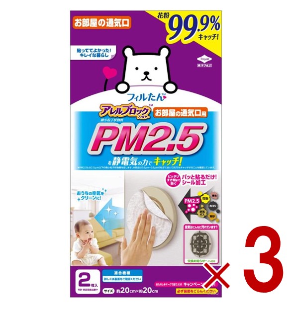 東洋アルミ フィルたん アレルブロック フィルター PM2.5対応 お部屋の通気口用 2枚入 3個