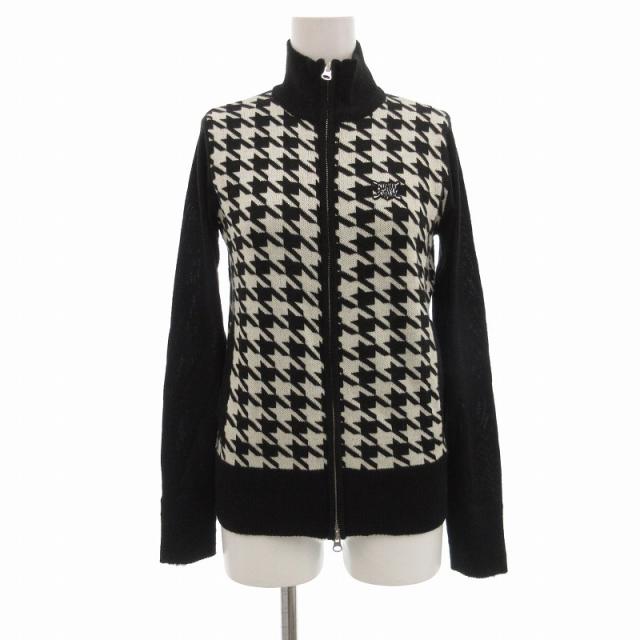 【中古】エドウィン EDWIN GOLF ドライバーズニット ジップアップ カーディガン 千鳥格子 S 白 ホワイト 黒