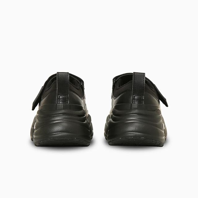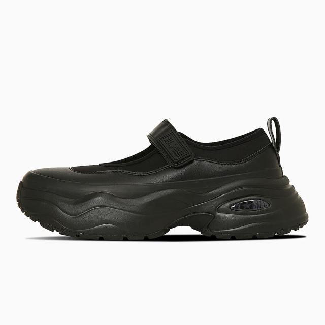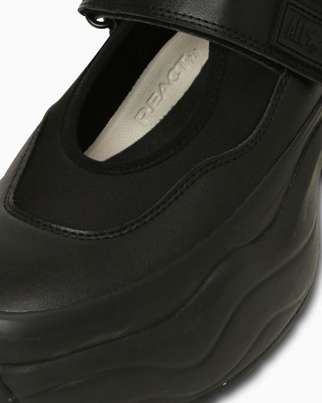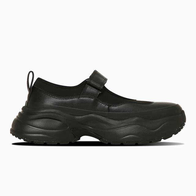 ボリュームのある厚底ソールとワンベルトで着脱性の高いメリージェーンを掛け合わせた斬新なデザインがポイント。
