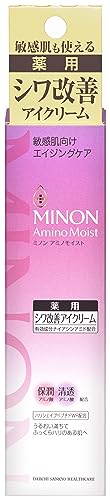 ミノンから生まれたフェイスケア「ミノン アミノモイスト」敏感肌を研究し続けた製薬会社がつくる独自の処方で「やさしさ」×「美しさ」を実現しました。バリア機能が低下しがちな肌を守りながら洗い、うるおいで満たして、すこやかに美しく保ちます。 シワ・乾燥くすみが気になりやすい敏感肌の目元に肌あたりやさしくなじみ、しっとり吸い付くようなハリのあるテクスチャーがぴたっと密着する薬用シワ改善アイクリームです。 使用方法化粧水、乳液などで肌を整えた後、清潔な指先に適量(両目で米粒2つ分程度)を取り、目元などにやさしくなじませます。 Tips目尻→目の下→目頭→上まぶたの順に4点にクリームを置き、円を描くようにやさしくなじませます。口元や額など、シワの気になるところにもご使用いただけます。 内容量25g原産国日本 スキンタイプ敏感肌・乾燥肌