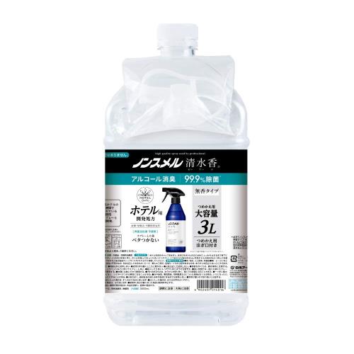 ノンスメル清水香(せいすいか) 無香 つめかえ大容量 3L 消臭スプレー 無香料 詰め替え 速乾 ベタつかない 界面活性剤不使用 除菌 服 空間