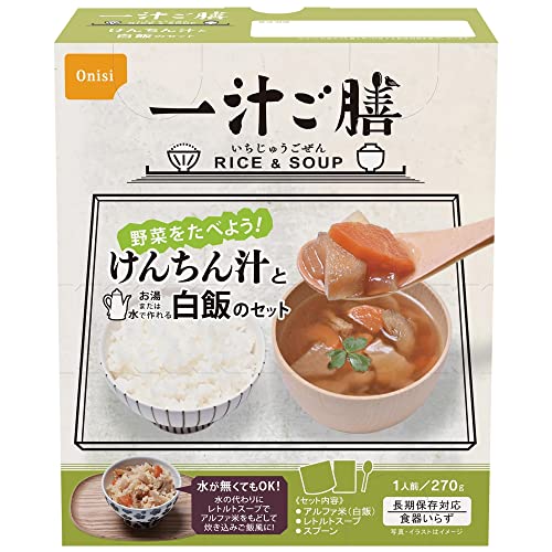 野菜がごろっと入った「けんちん汁」と「アルファ米」の1食分セット