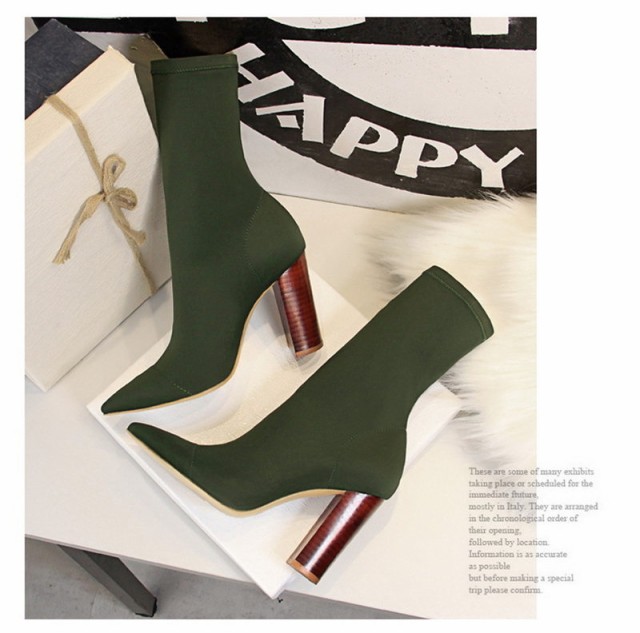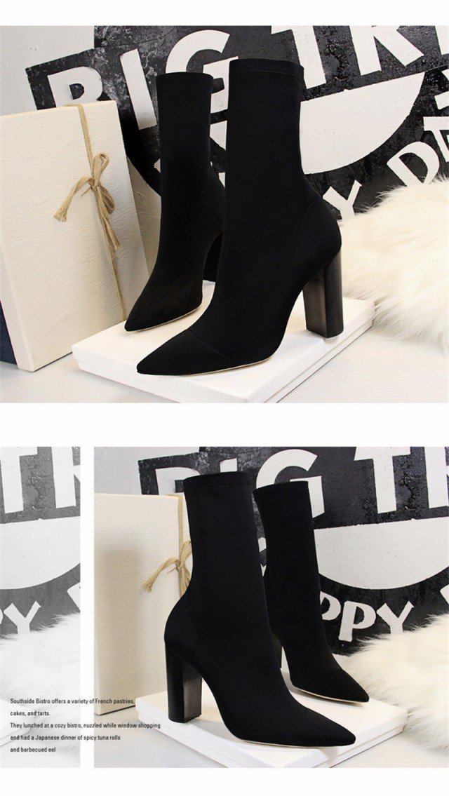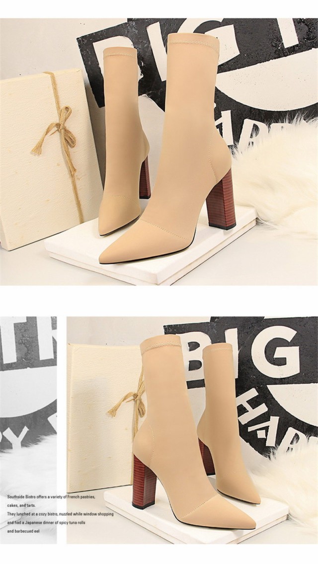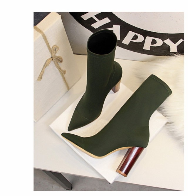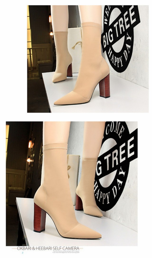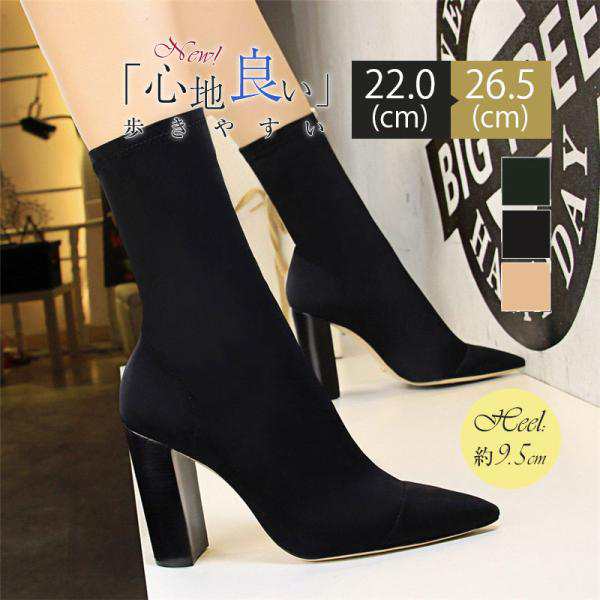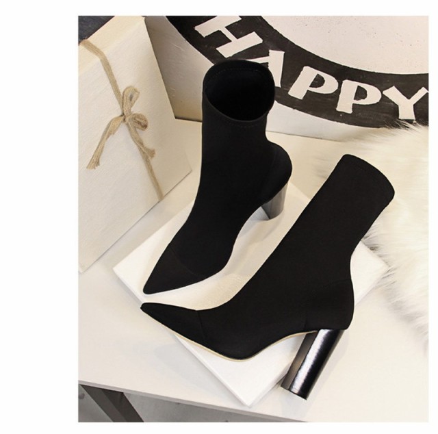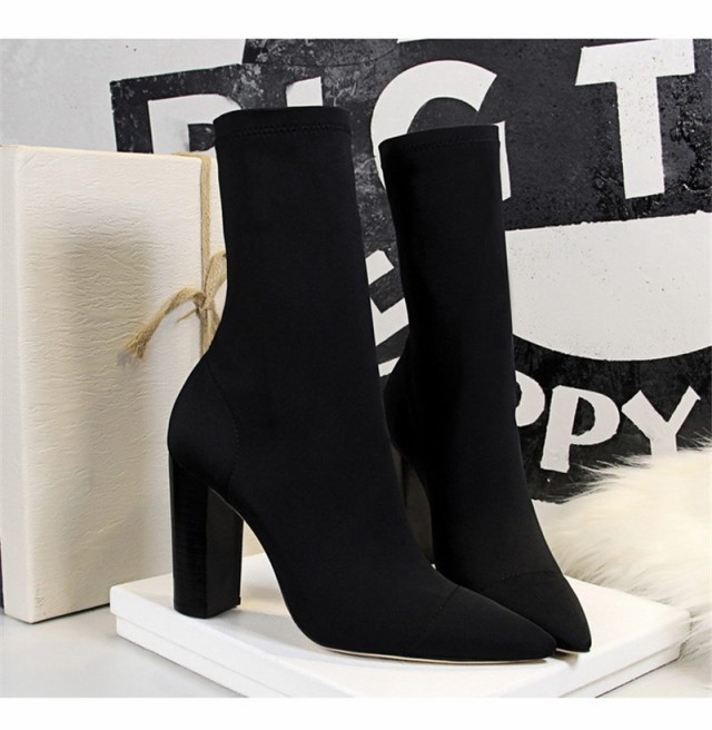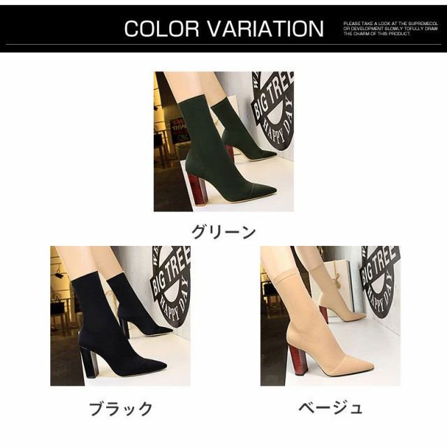 【ポイント5倍!】ソックス風 ショートブーツ レディース ニットブーツ チャンキーヒール 太ヒール 高級感 えレゲント シンプル 通勤 美脚 脚長 売れ筋