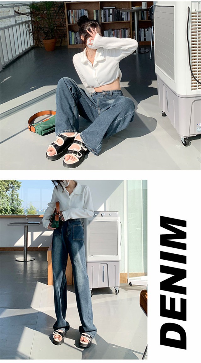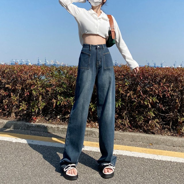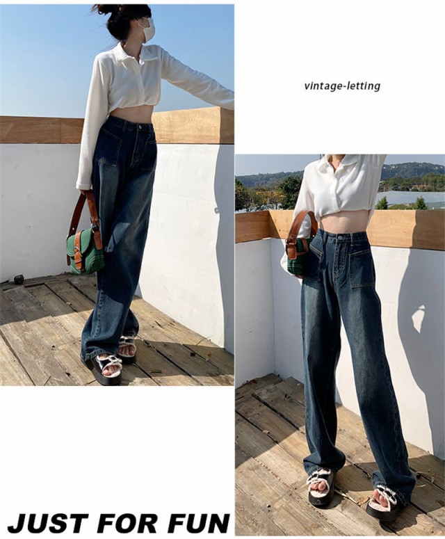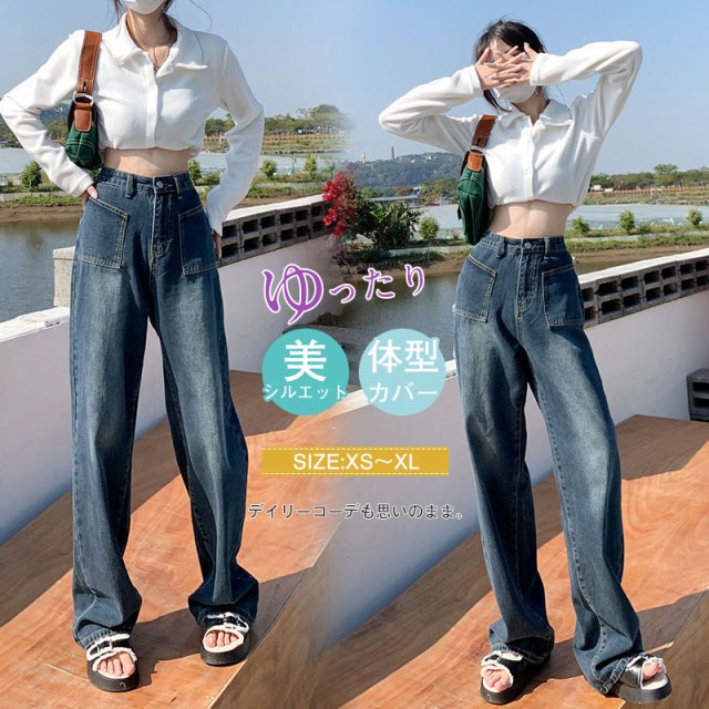【ポイント5倍!】ワイドデニムパンツ レディース セミワイド ゆったり 脚長効果 韓国ファッション 売れ筋 体型カバー 可愛い オシャレ 大人気 着痩せ