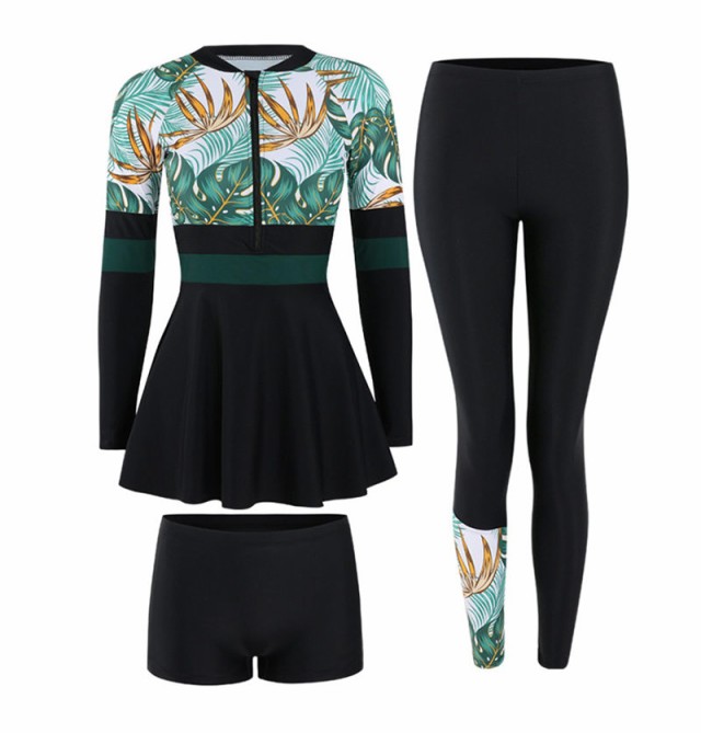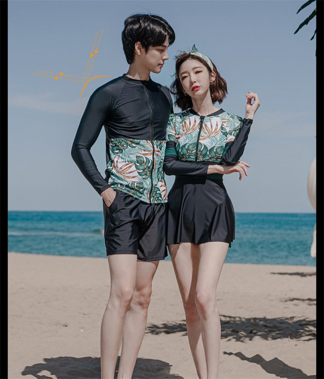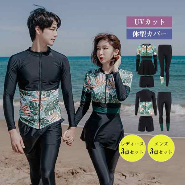 【ポイント5倍!】水着 レディース メンズ 体型カバー 3点セット 紫外線対策 UVカット カップル フィットネス 韓国風 競泳水着 水陸両用 おしゃれ