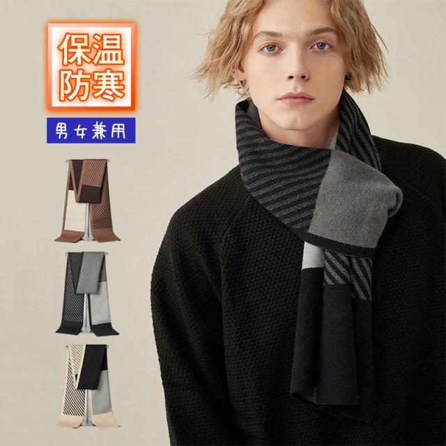 【ポイント5倍!】マフラー メンズ レディース ニット 男女兼用 デザイン ストライプ 秋冬 保温 防寒 寒さ対策 羽織 シンプル ファッション おしゃれ セール