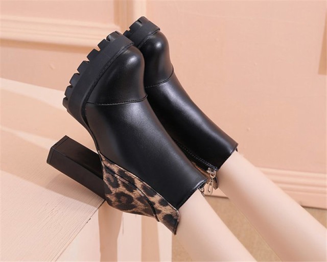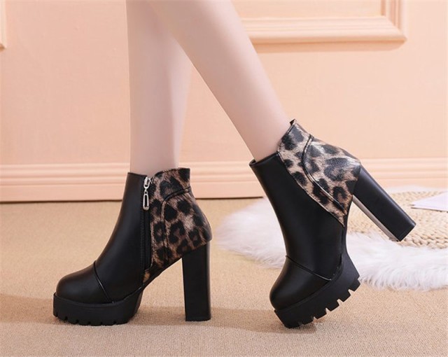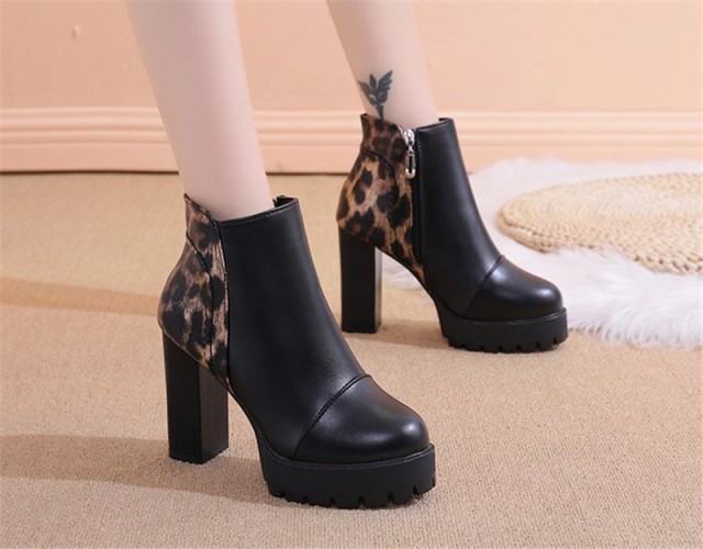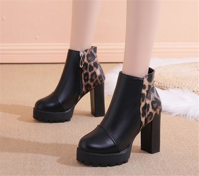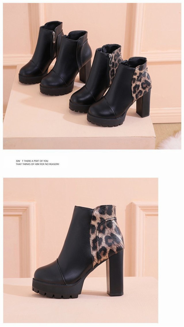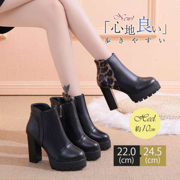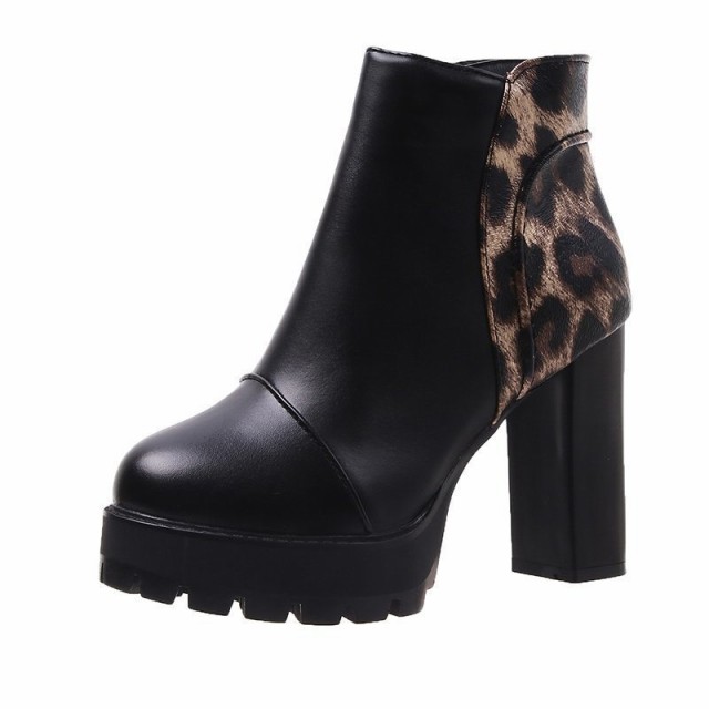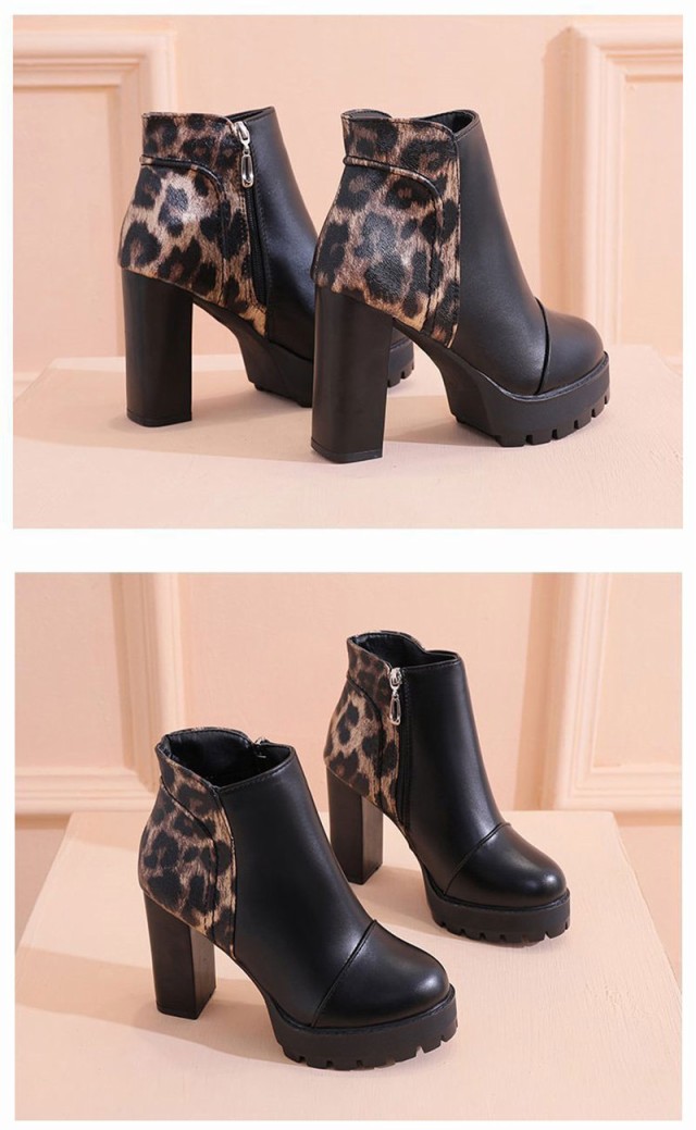 【ポイント5倍!】ショートブーツ ヒョウ柄 売れ筋 レディース チャンキーヒール サイドジップ 歩きやすい 太ヒール シンプル 楽ちん 通勤 きれいめ 婦人靴