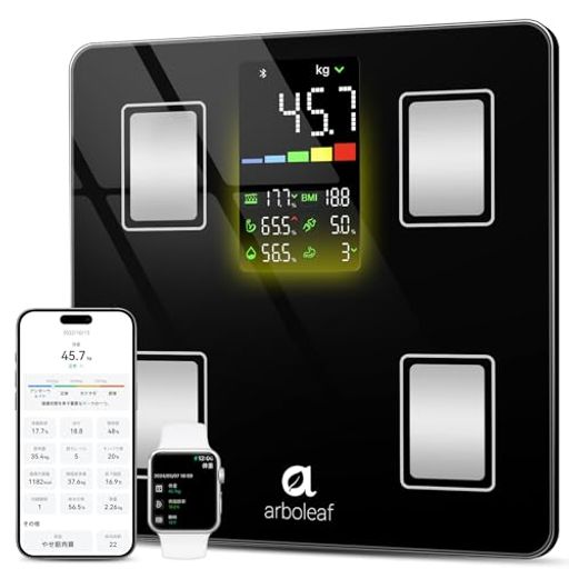 ARBOLEAF 体重計 スマホ連動 体脂肪計 体組成計 BLUETOOTH対応 ヘルスメーター 高精度 180KGまで対応 電池付け 14項目測定 体脂肪率/筋肉量/BMIなど体組成測定 【APPLE