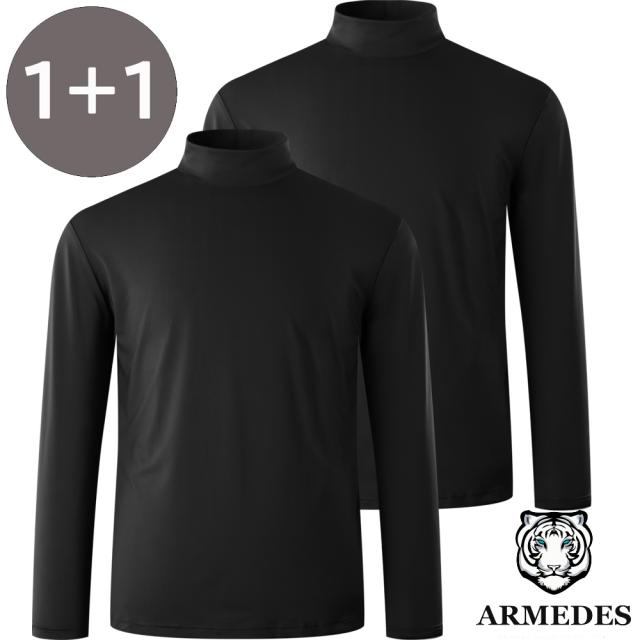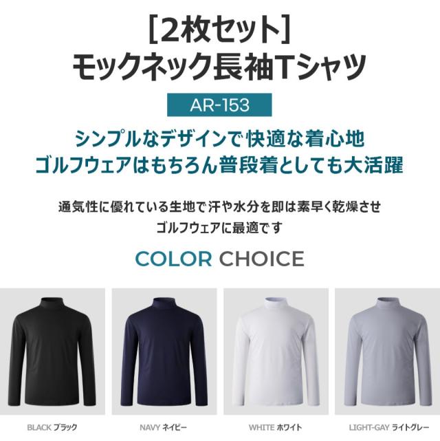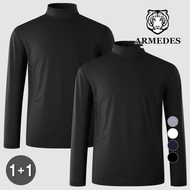 2枚セット 送料無料 ARMEDES アルメデス ゴルフウェア インナー 接触冷感 吸汗速乾 UVカット ドライ素材 モックネック タートルネック 長袖 Tシャツ 日常 トレーニングウェア ランニング フィットネス メンズ M-XL 全3色 オールシーズン AR153