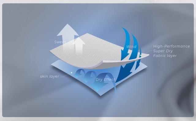 ドライ生地を使用しており、ソフトな肌触りが特徴。