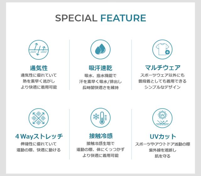 さらに、クーリング生地により肌にくっつきにくく、ストレスフリーな着用感を提供します。