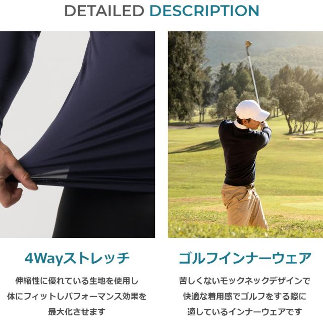 こちらのモックネック長袖Tシャツは、ゴルフウェアとして最適なデザインでありながら、普段着としても活用できるマルチウェアです。