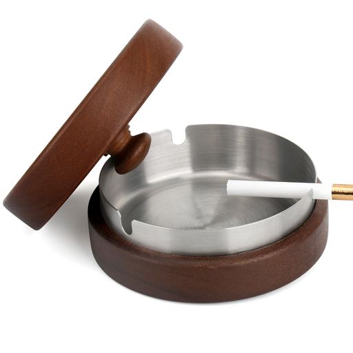 GESPERT 灰皿 ふた付き ステンレス はいざら 消臭 洗いやすい 滑り止め 防風 防臭 密閉 木製外観 コンパクト 携帯灰皿 室内 卓上 屋外 シルバー