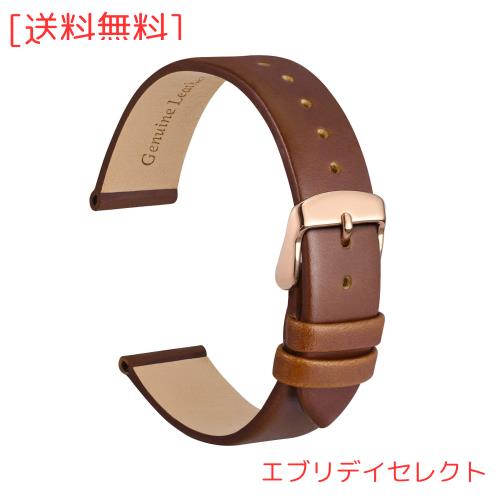 [WOCCI] 本革時計バンド 18mm カーフレザー 腕時計交換ベルト ダークブラウン ローズゴールドバックル