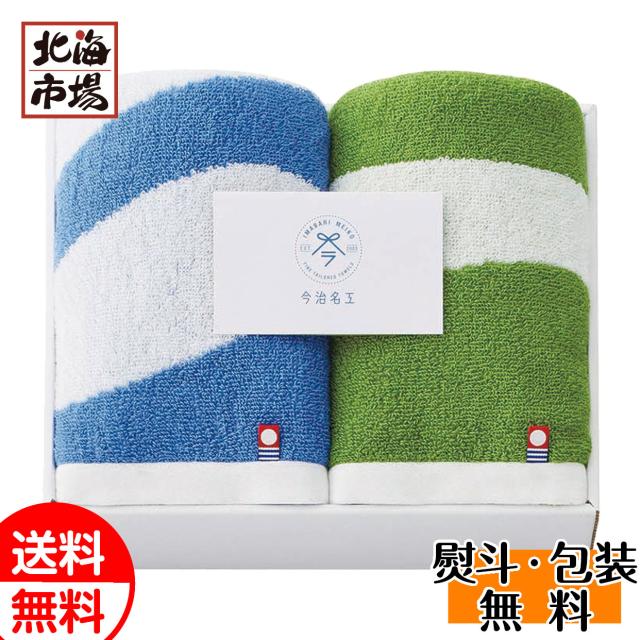 今治名工 フェイスタオル2P I-77302 ブルー×グリーン 送料無料 贈り物 お返し 誕生日 内祝 卒業 入学 お祝い 御礼 母の日 プレゼント