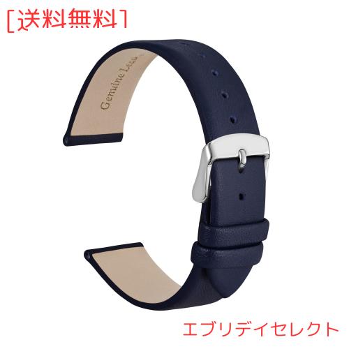 [WOCCI] 本革時計バンド 14mm カーフレザー 腕時計交換ベルト ブルー シルバーバックル