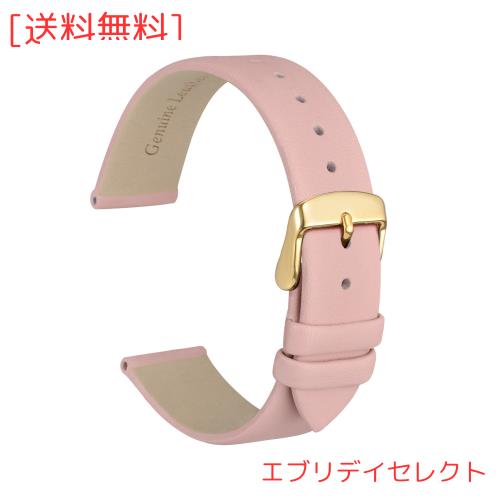 [WOCCI] 本革時計バンド 8mm カーフレザー 腕時計交換ベルト ピンク ゴールドバックル