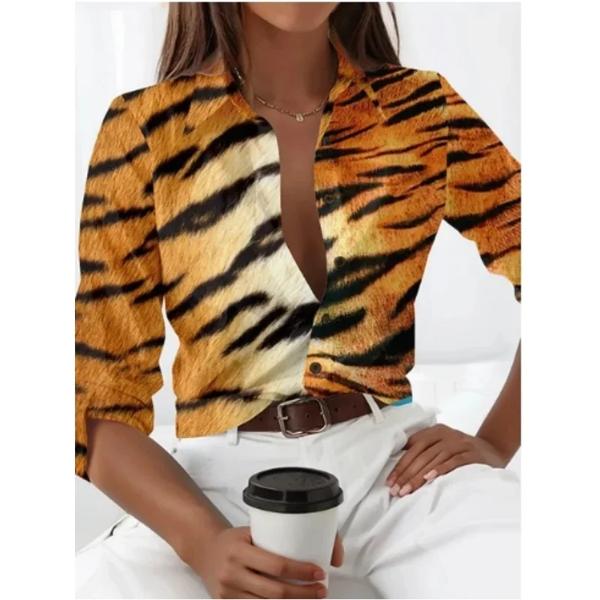 女性用長袖ヒョウ柄シャツ,ルーズカジュアルトップ,パーソナライズされたストリートトレンドスタイルのブラウス,新しい2024