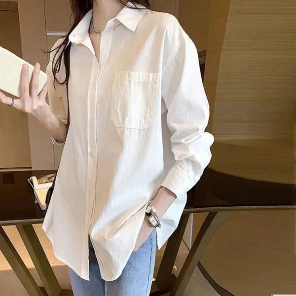 Xpqbb-女性用長袖襟ブラウス,ルーズフィット,シングルブレスト,カジュアル,春秋,2022