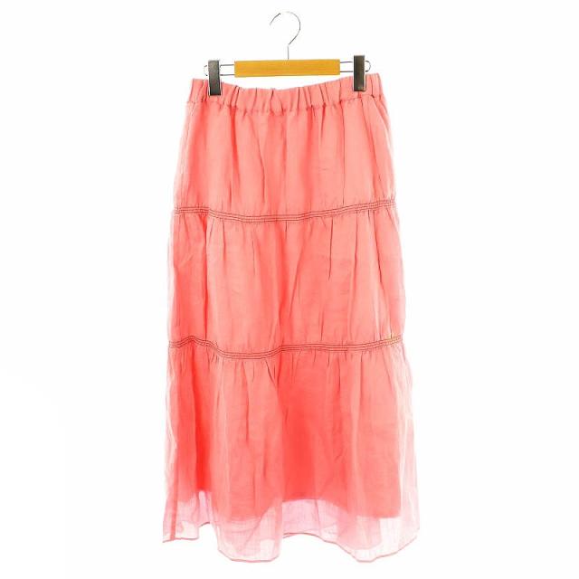 【中古】エジック Ezick リネンロングスカート ティアード M ピンク /HK ■OS レディース