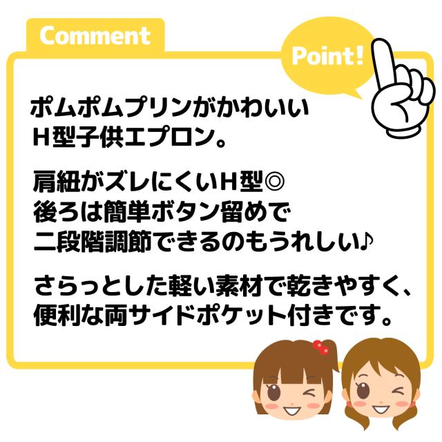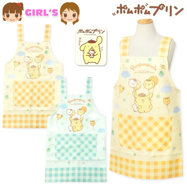 【送料無料】女児 キッズ ジュニア H型 エプロン Sanrio サンリオ ポムポムプリン 後ろボタン留め 2段階調節 ポケット付き 子供 女の子 130cm 150cm sl-0615【メール便対応】