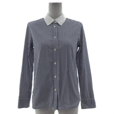 【中古】マカフィー MACPHEE トゥモローランド シャツ クレリックシャツ 襟スパンコール 長袖 ストライプ 紺 白 38